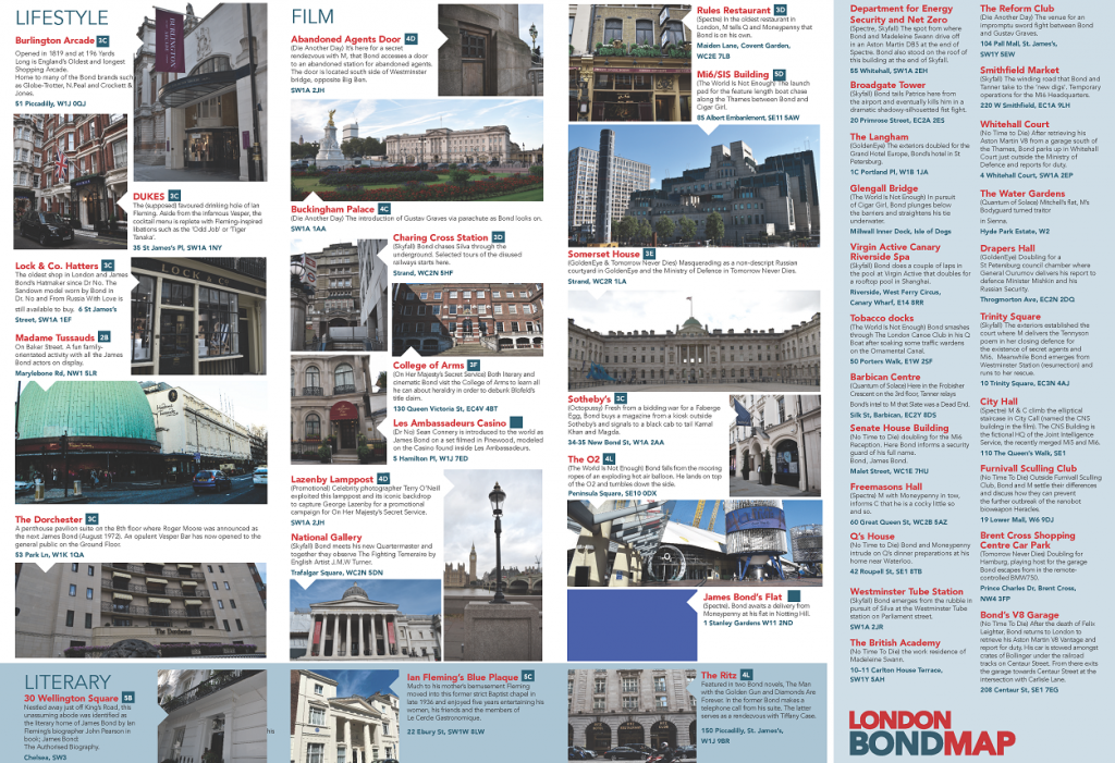 “Bond is summoned to by Moneypenny to the suite of offices occupied by M and his personal staff, on the ninth floor of the anonymous building overlooking Regent’s Park.” Pg11.