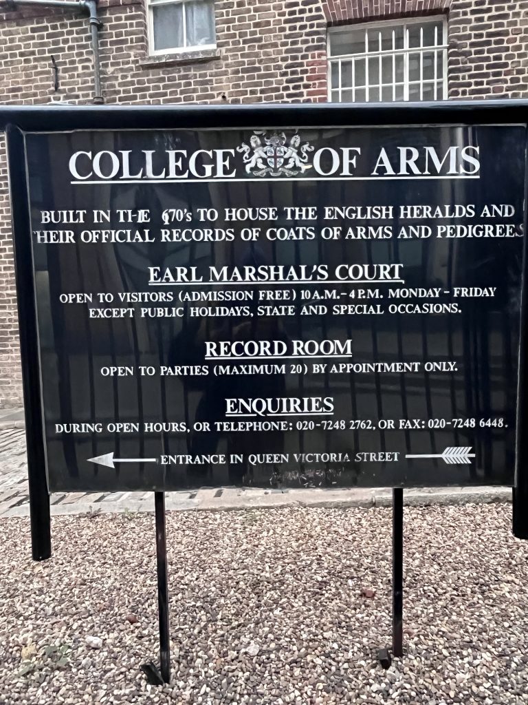 Address: College of Arms, 130 Queen Victoria St, London EC4V 4BT
